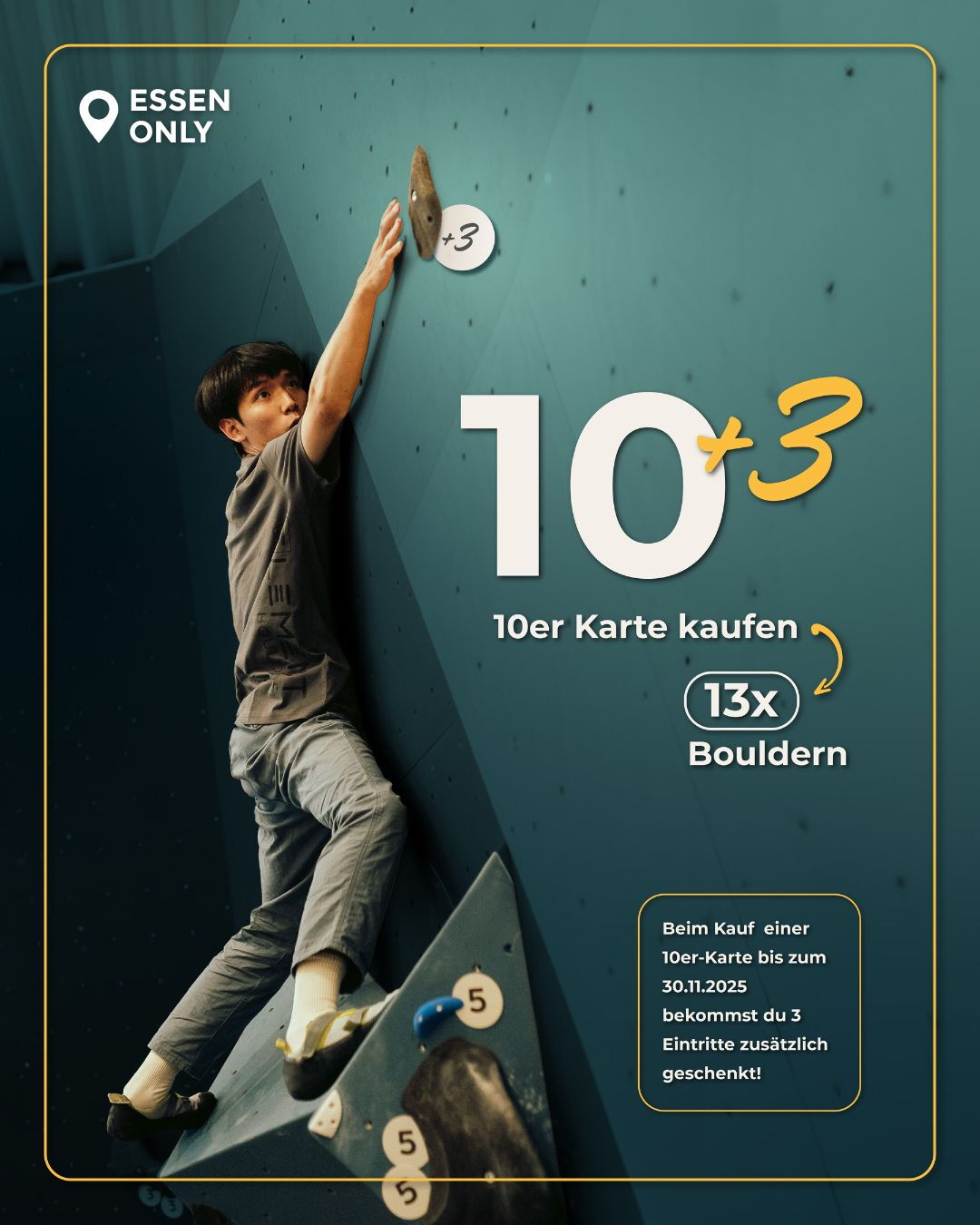 📍 Die 10+3 Aktionskarte ist nur für den Standort Essen von Element Boulders gültig.